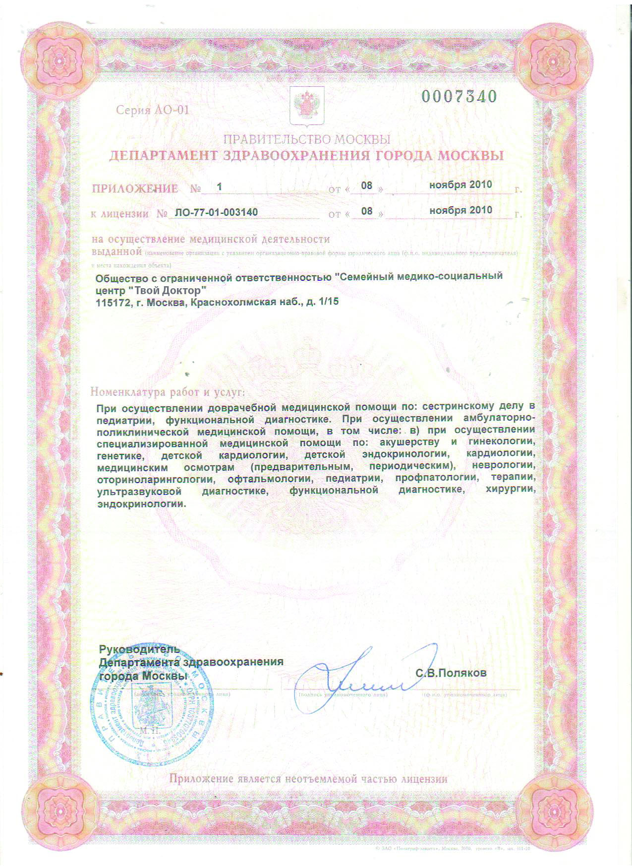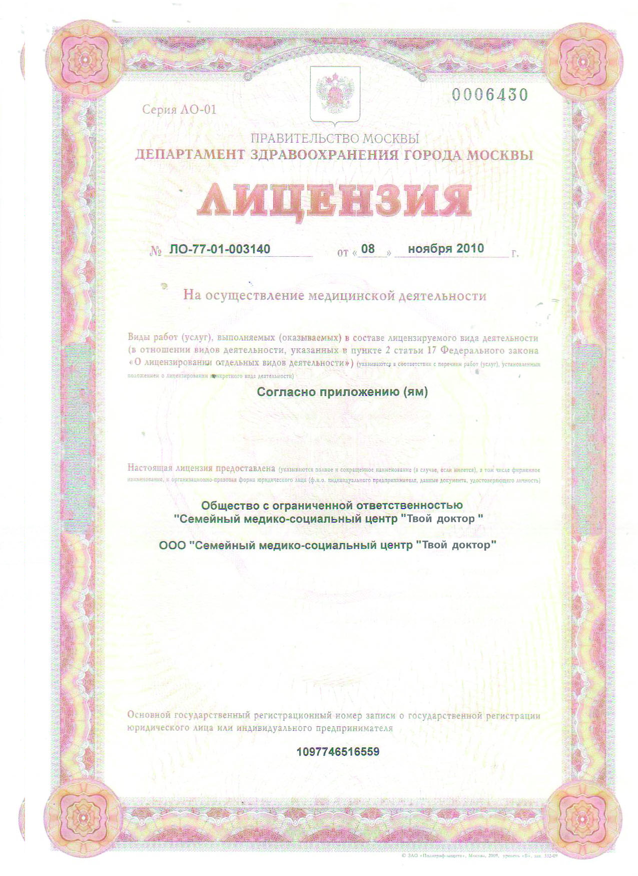 Наш медицинский центр имеет все лицении на медицинскую деятельность и врачебную практику.